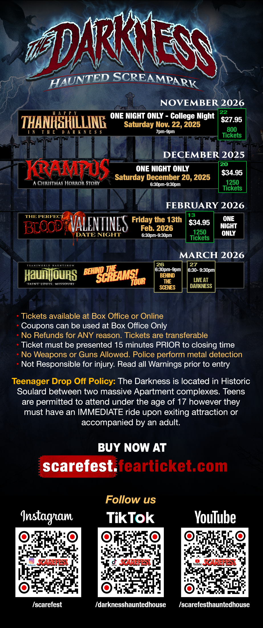holiday cheer and turn it to fear. Tickets include a Krampus themed version of The Darkness Haunted House - Outdoor Screamzone -